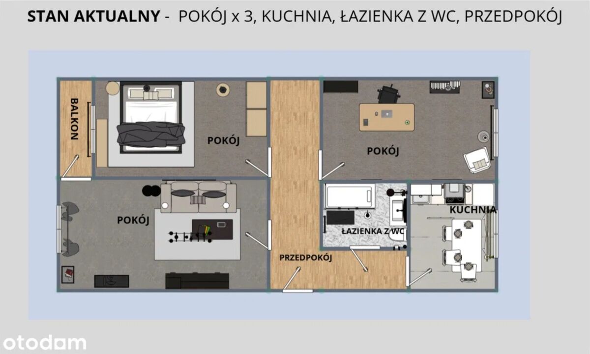 Funkcjonalny układ – 3 oddzielne pokoje i osobna kuchnia