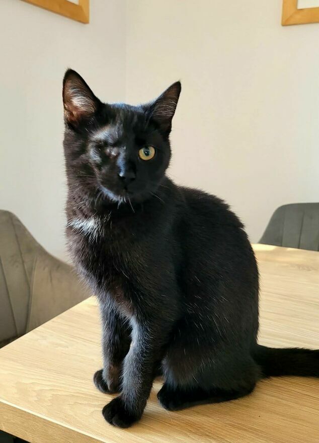 Poznaj Hanusię – malutką około 5/6 miesięczną, wesołą i rozmruczaną koteczkę, która uwielbia towarzystwo człowieka. Na początku bywa troszkę nieśmiała, ale kiedy tylko poczuje się bezpiecznie, sama wskakuje na kolana, wtula się i cudownie przy tym mruczy.Hanusia ma jedno oczko, co w niczym jej nie przeszkadza – radzi sobie świetnie i żyje jak każdy inny kotek. Jest pełna energii, radości i ogromnej miłości do ludzi.