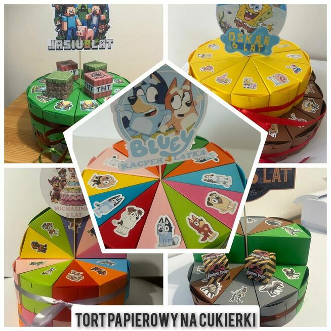 Tort papierowy do przedszkola, na urodzinki na słodkości lub drobne upominki. 1 piętro to 10 lub 12 kawałków w cenie 28 ...