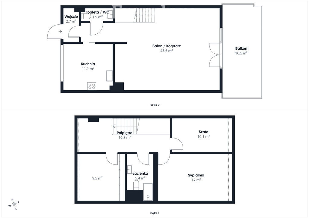 południowy wschód oraz kuchnia i pozostałe pokoje na południowy