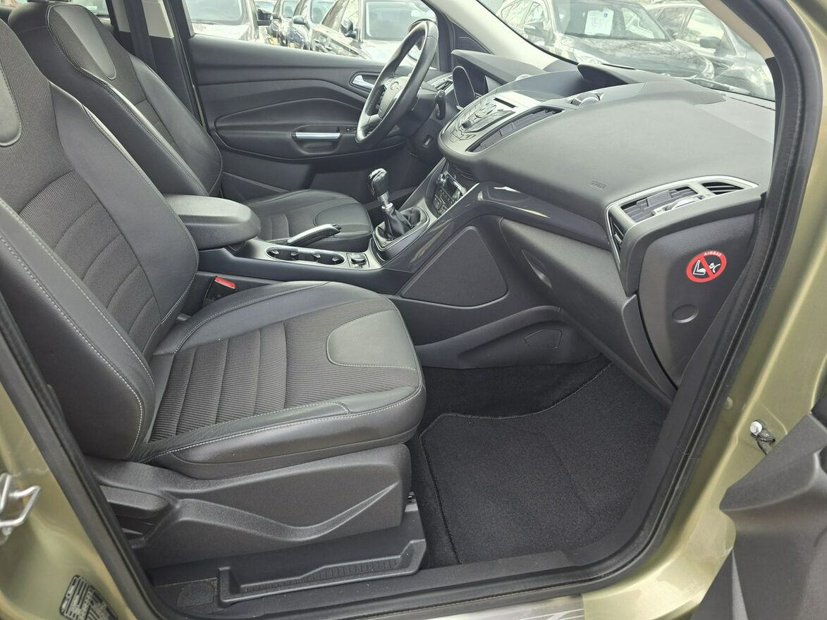 Kuga w pięknym, Oliwkowym kolorze prezentuje się bardzo dobrze a do kompletu auto porusza się na oryginalnej feldze aluminiowej w rozmiarze 17 cali z oponami wielosezonowymi.