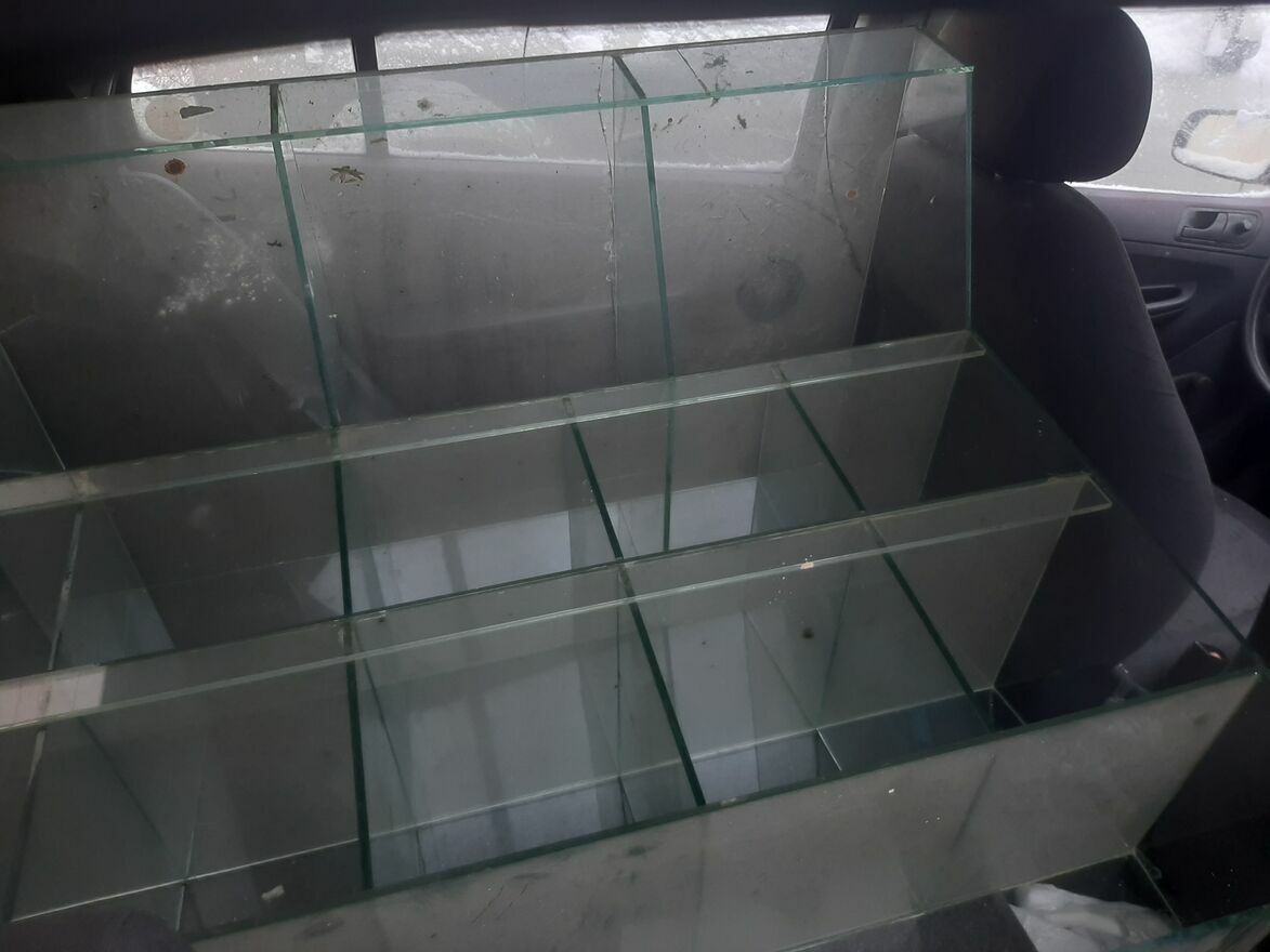 Do sprzedania szklana gablota, Organizer na np cukierki do sklepu, ewentualnie do warsztatu itp. Gablota ma pęknięcia w 2 miejscach. Wymiary 120 cm x 73 cm x 59 cm w najszerszym miejscu. Gablota jest ciężka. Tylko odbiór osobisty Sosnowiec.Wystawiam jako uszkodzoną ze względu na pęknięcia.Mozna ewentualnie spróbować rozebrać na pojedyncze płaty szklane i wykorzystać do czegoś innego