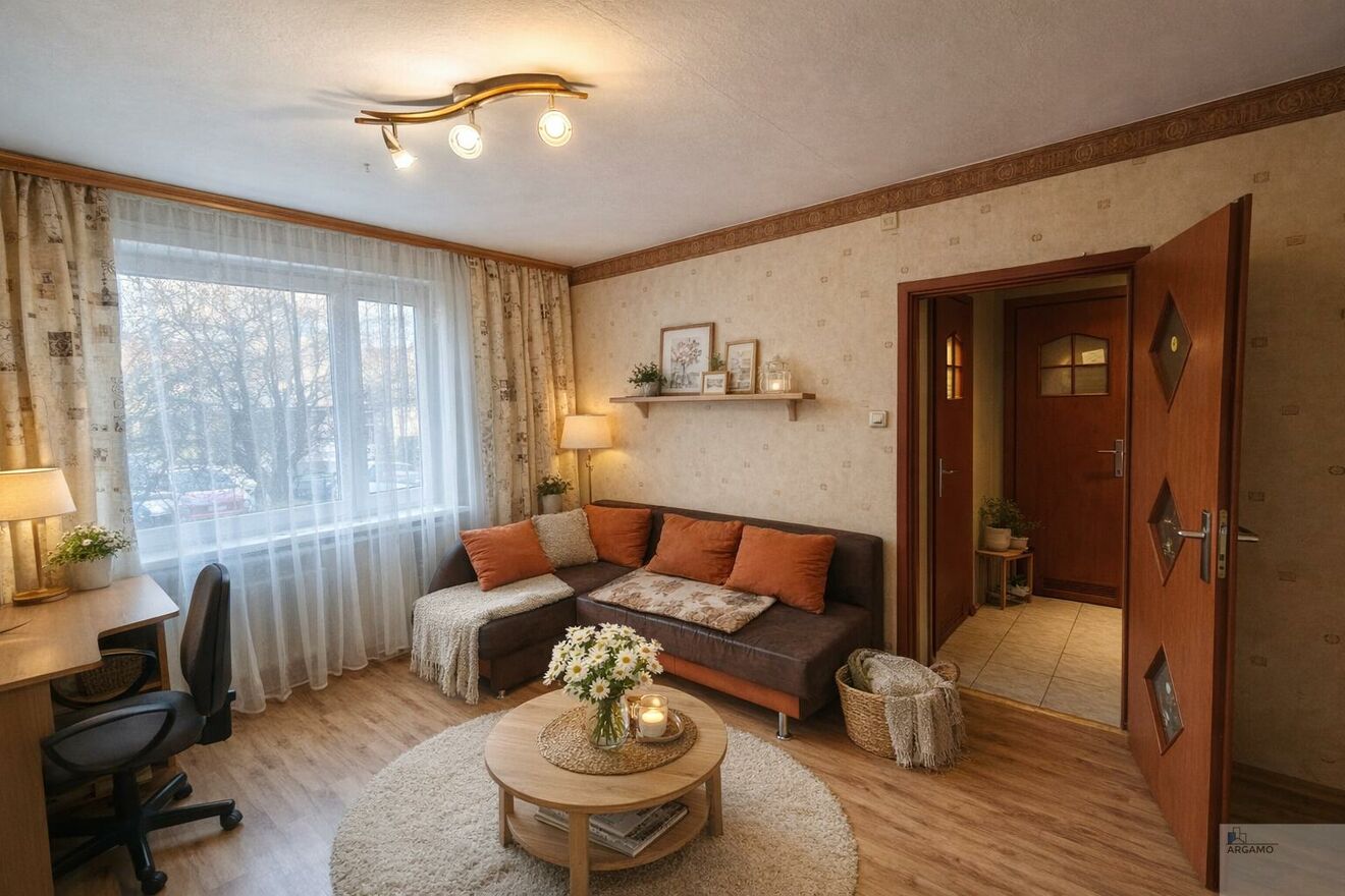 Mieszkanie jest zadbane i nadaje się do zamieszkania, a jednocześnie może stanowić doskonałą bazę do własnej aranżacji według aktualnych trendów.