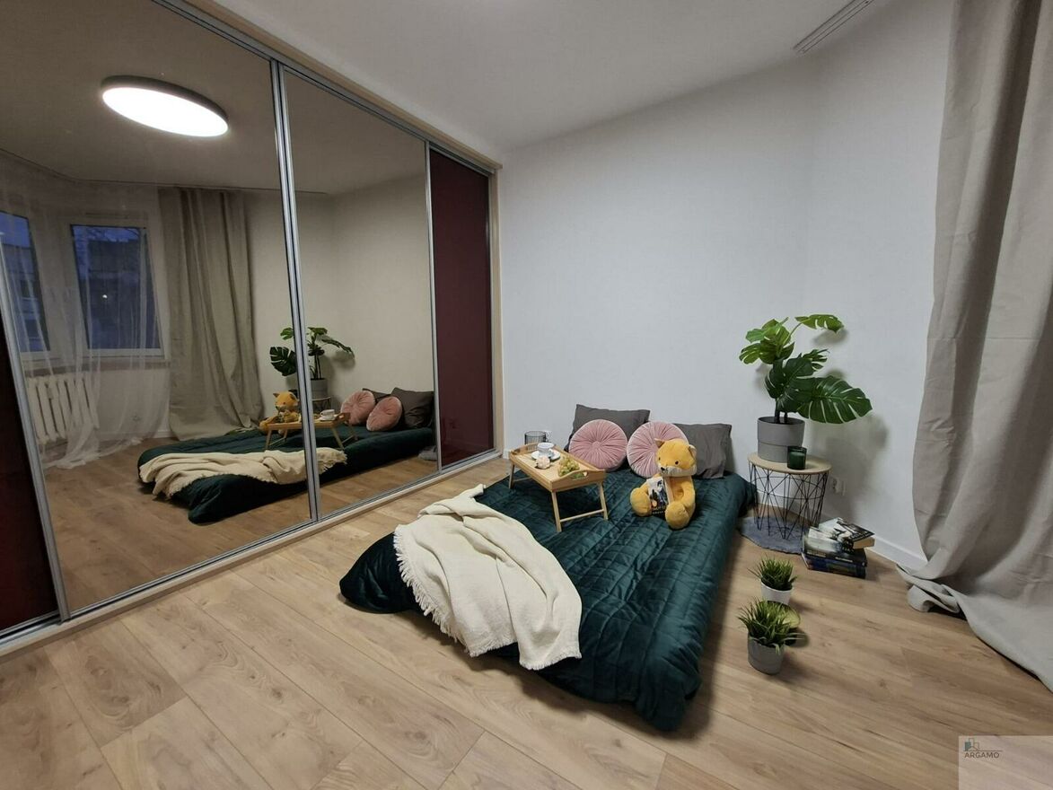 - jedna z sypialni wyposażona jest w dużą zabudowaną szafę z lustrzanymi frontami, zapewniającą dużo miejsca do przechowywania