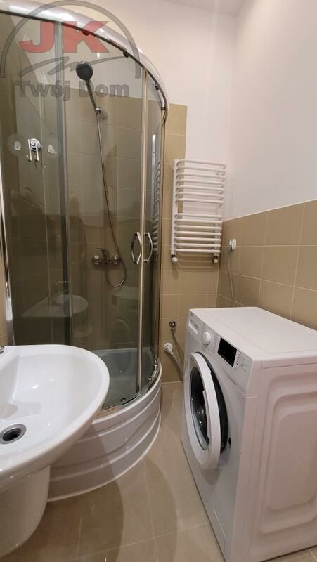Mieszkanie ogrzewane centralnie, ciepła woda z sieci. Kuchnia w zabudowie, wyposażona w płytę indukcyjną, piekarnik elektryczny i lodówkę. W łazience prysznic, umywalka, WC oraz pralka. W przedpokoju szafa w zabudowie. Pokój jest nieumeblowany.