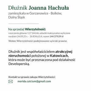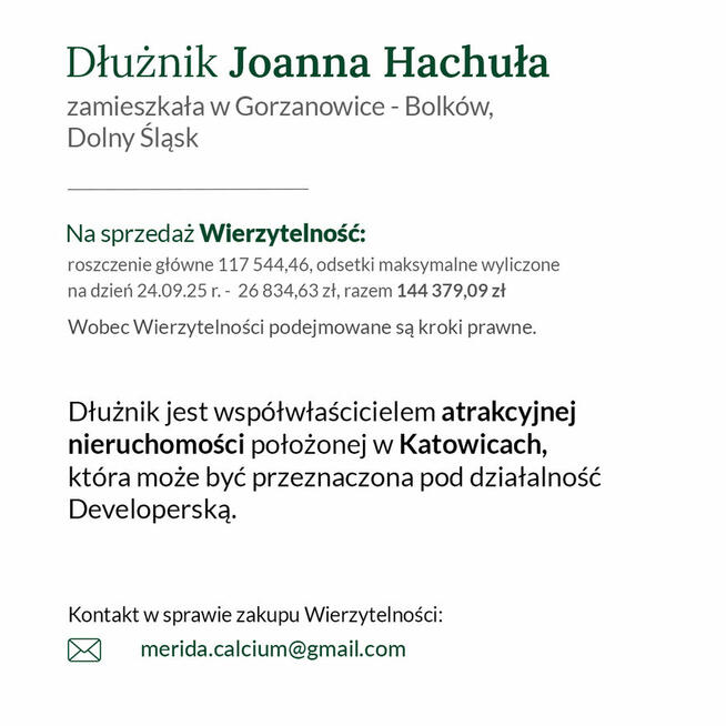 Szanowni Państwo, na sprzedaż Trzy wierzytelności - CESJA WIERZYTELNOŚCI - Dłużnicy są w posiadaniu , jako ...