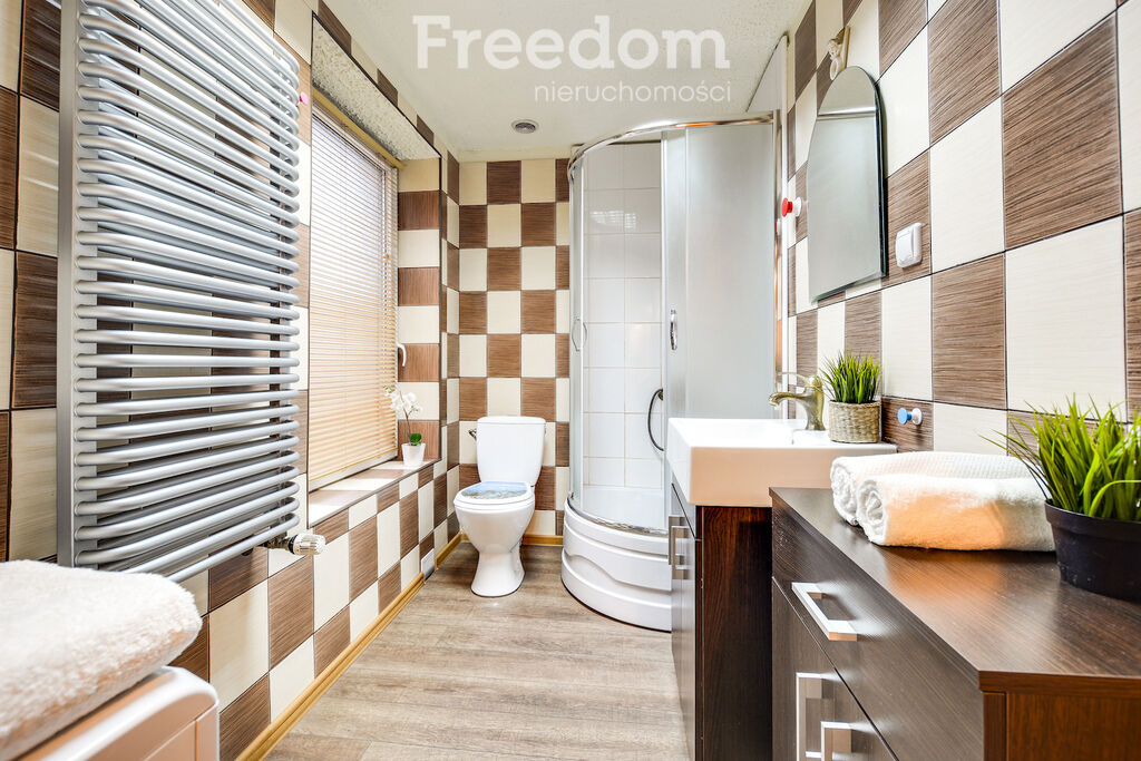 Łazienka: prysznic, wc, umywalka, nowa pralka.