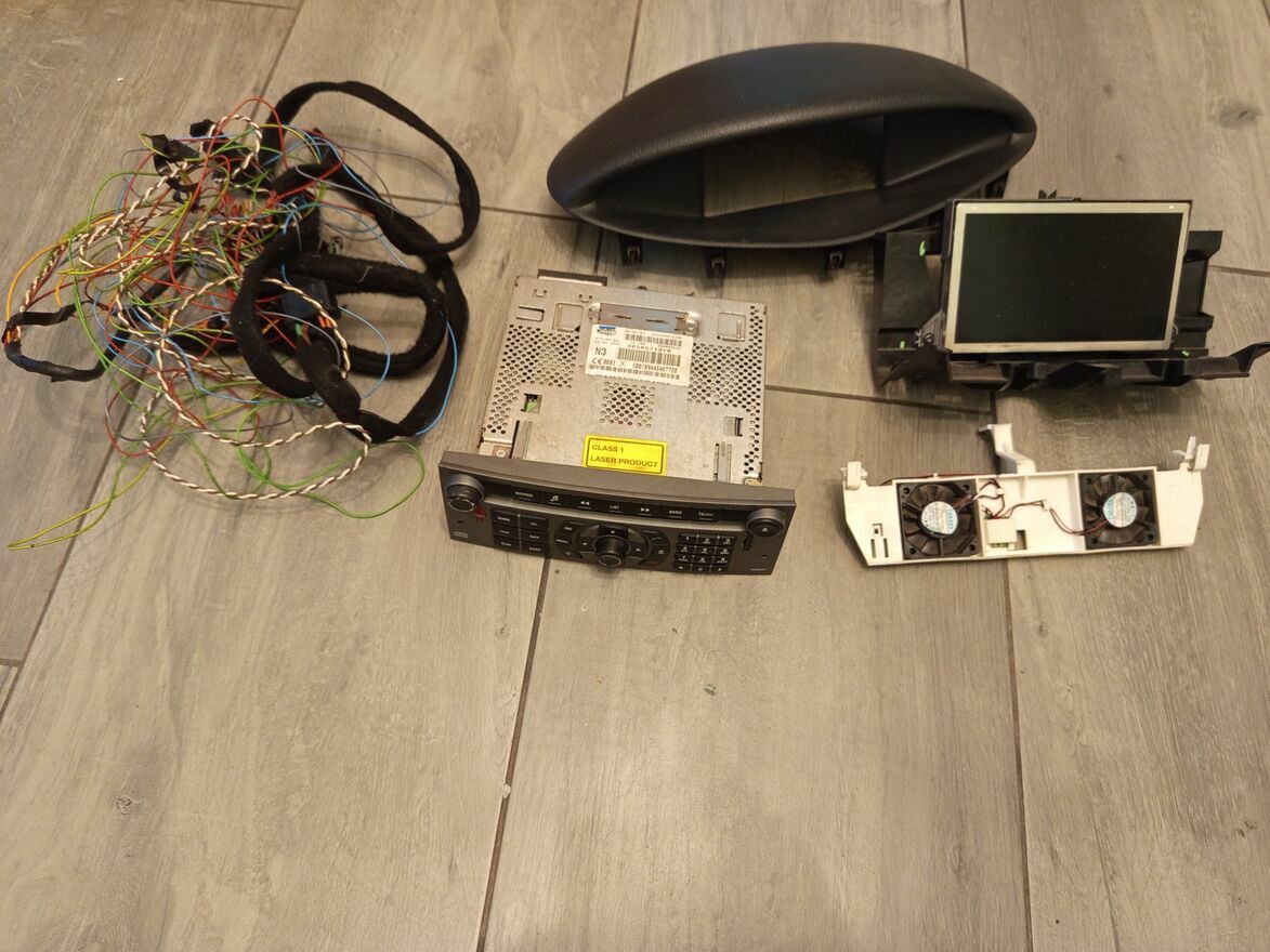 Witam.Na sprzedaż posiadam komplet elementów potrzebnych do montażu dużego wyświetlacza do Citroena C5 po litingu. W skład wchodzi radio, wyświetlacz, daszek nad wyświetlacz, kompletna wiązka oraz wiatraczki do chłodzenia.