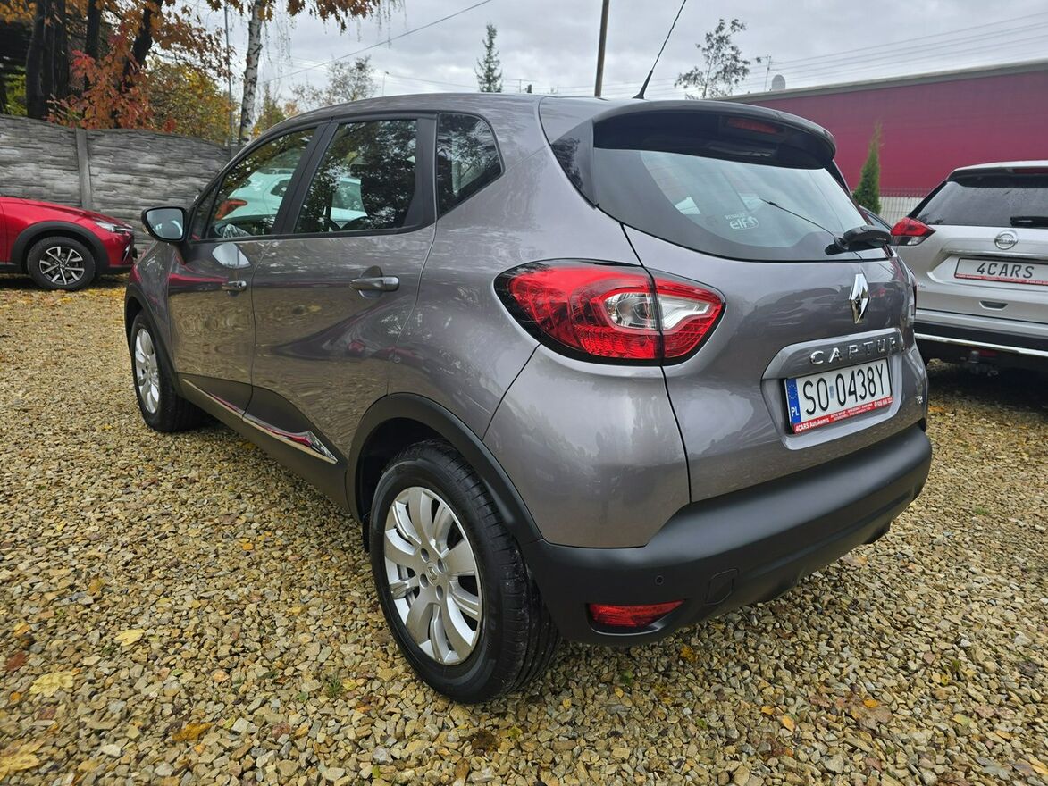 Dziś do sprzedaży oferuję poszukiwanego małego Suva Renault Captur z końca 2014 roku a pierwsza rejestracja w 2015. Auto zarejestrowane i ubezpieczone więc po zakupie można wsiadać i cieszyć się z jazdy.Prezentowany egzemplarz w bardzo ładnym kolorze grafit metalik a auto do kompletu porusza się na oryginalnej feldze aluminiowej w rozmiarze 16 cali z oponami letnimi.