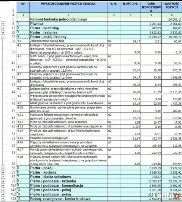Sporządzanie/przepisywanie przedmiarów robót lub kosztorysów budowlanych do programu Norma Expert. Sprządzanie ...