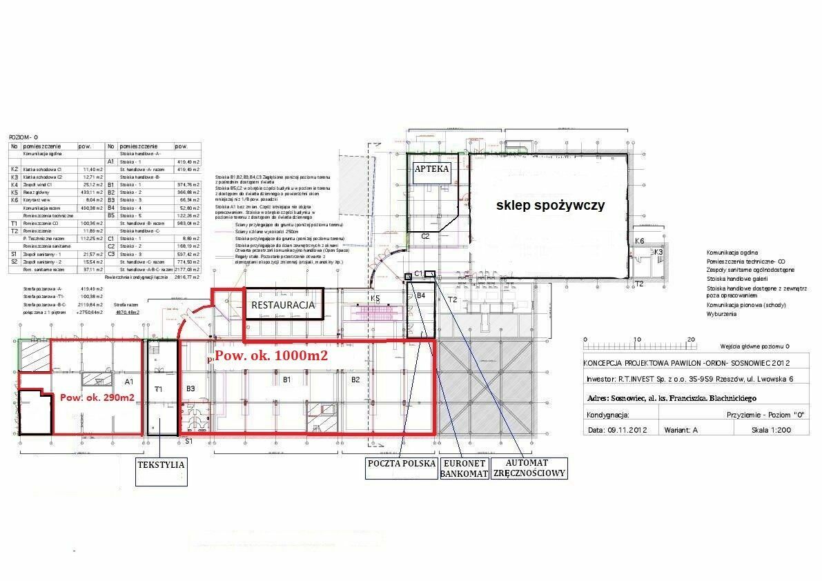 Wynajmę pow. ok. 846m2 na parterze w Sosnowcu (ORION)