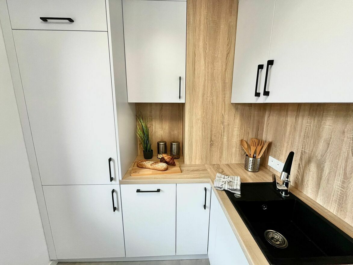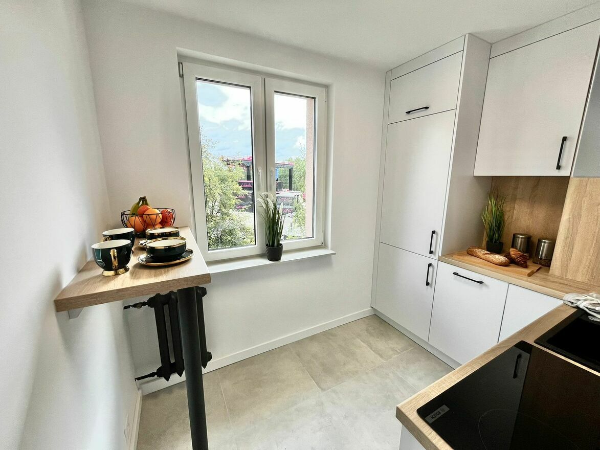 - Widna kuchnia po remoncie – nowoczesna i funkcjonalna,